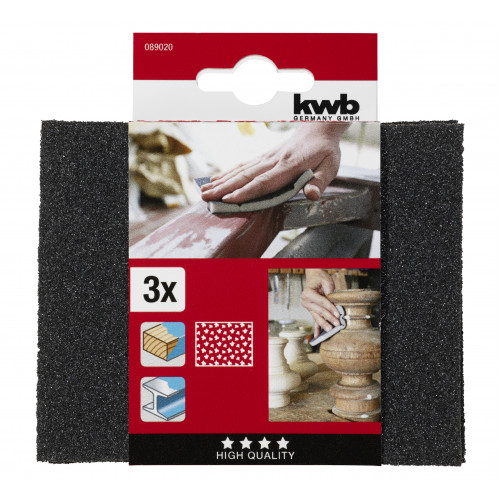 kwb Schuurpad, hout en metaal, ZB-manchet -- Schuurpad, aan 2 kanten met siliciumcarbide bestrooid, 125 x 100 x 10 mm, drager van zeer flexibel polyurethaanschuim, kunstharsgebonden, droog en nat bruikbaar. Het schuurstof kan worden uitgewassen. Lange levensduur, bijzonder geschikt voor het schuren van gevormde oppervlakken. Voor het verwijderen van roest en verf. Voor het reinigen en schuren van kunstharslak en acryllak als voorbereiding op een nieuwe laag.
