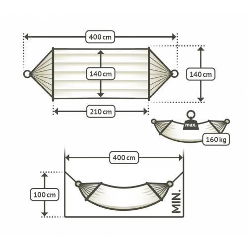 Kingsize spreidstok hangmat gewatteerd