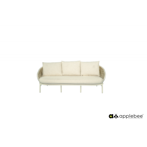 De 3-zits loungebank wordt standaard geleverd met een luxe Bee Wett all-weather kussenset in de lichte stofkleur Cotton Flower. Deze kussens bieden ultiem zitcomfort en zijn gemaakt voor jarenlang buitenplezier.