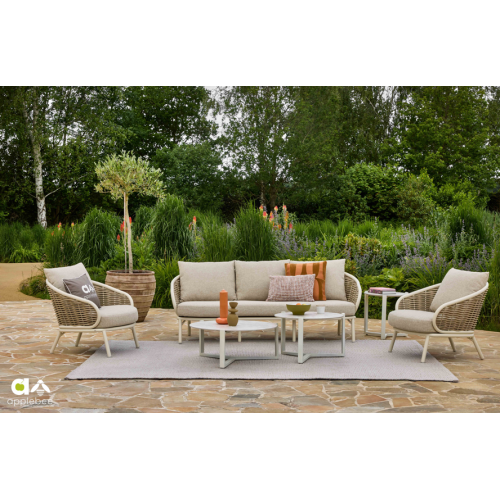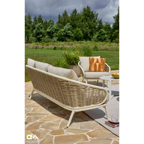 De Pine Key 3-zits loungebank van Applebee maakt deel uit van een nieuwe stijlvolle serie. De herkenbare Applebee-signatuur is in het ontwerp duidelijk terug te zien: warm, vriendelijk en met oog voor detail.
