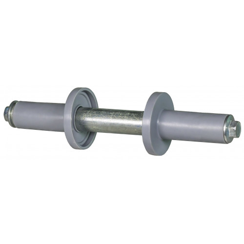 As van 19 cm voor een kruiwagenwiel met een asgat van Ø 20 mm. Inclusief bevestigingsbouten en beschermdoppen. Ook verkrijgbaar met een aslengte van 13 cm (art.nummer A12).