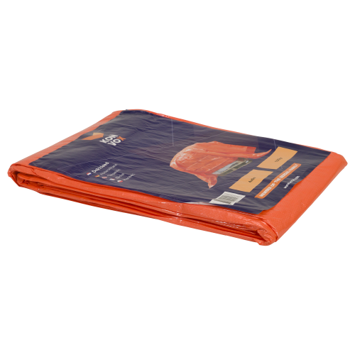 Standaard kwaliteit oranje afdekzeil 4x6m 100gr/m² als versiering van uw feest, tijdelijk afdak of bescherming voor tuinmeubelen of bouwmaterialen tegen vuil en vocht. Waterdicht oranje afdekzeil 100gr/m²