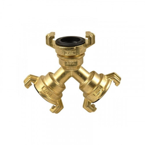 De originele Duitse messing bajonet koppeling 3-weg verdeler voor het combineren en splitsen van slangen. Belastbaar tot 20 bar en uitgevoerd met NBR dichtingsring voor een goede waterdichte verbinding.