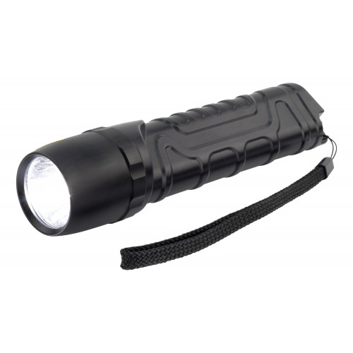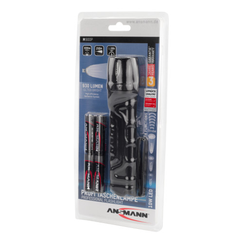 10W LED-zaklamp bestaande uit een lampkop van hoogwaardig vliegtuigaluminium en een lampbehuizing van robuuste ABS-kunststof; heeft een zeer efficiënt reflectorsysteem voor een optimale lichtopbrengst; helderheid: tot 930 lumen; lichtbereik: tot 240 m; brandtijd: 20 uur; schokbestendig tot 1 m valhoogte (beschermingsklasse IP67); incl. 4x alkaline Mignon AA-batterijen en polsband; 3 jaar garantie.