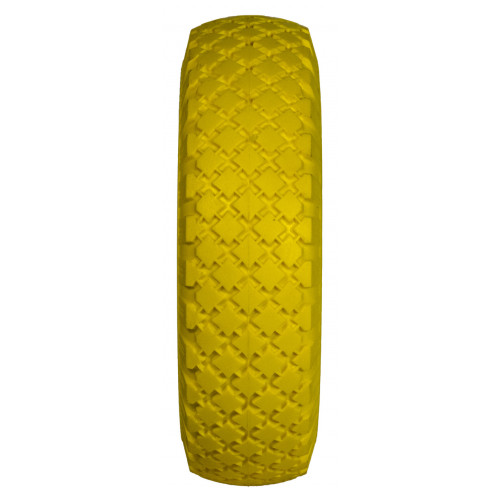 Steekwagen softwiel 300x4 met metalen velg en gele foamband. Asgat Ø 20 mm. Ook verkrijgbaar met grijze foamband en kunststof velg (CW124).