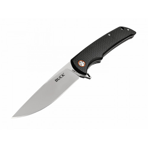 De Buck Haxby Carbon Fiber combineert een vlakgeslepen lemmet met esthetische carbon fiber schalen en creëert daarmee een functioneel en zeer elegant EDC mes. De gelagerde flipper opent en sluit soepel met één hand. De oranje lager-krans accentueert de zijdeglans carbon fiber schalen en zijn draagclip en lanyard gat zorgen voor voldoende draagmogelijkheden. Let op betreft clampack.