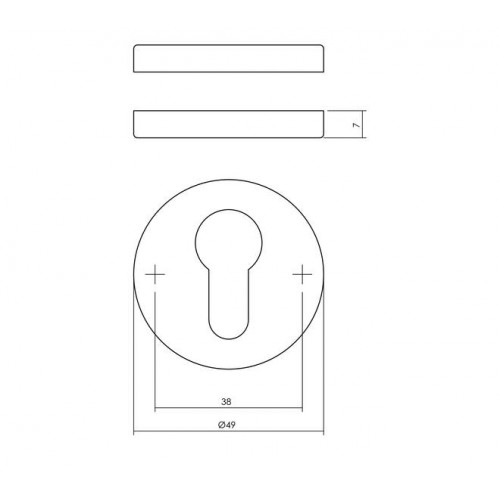 De rozet heeft een diameter van 49 mm en is 7 mm dik