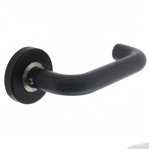 • DEURKRUK BERGEN OP RONDE ROZET MET RING MET VEER RVS MAT ZWART