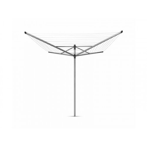 Deze Brabantia droogmolen heeft soepeldraaiende armen en een wrijvingsloos design waardoor u de was gemakkelijk kan ophangen. Zelfs wanneer de droogmolen vol hangt met wasgoed draait deze soepel rond. Dit heeft een positief effect op de droogtijd want de wind kan er lekker tussendoor waaien. De was wordt daardoor dus sneller droog. De droogmolen is in hoogte verstelbaar in verschillende hoogtes. De werkhoogte is traploos en met kleine stappen instelbaar tussen 129 en 187 cm. Deze droogmolen is daardoor voor zowel grote als kleine mensen geschikt. Op de laagste positie is de droogmolen zeer geschikt voor het luchten van uw kussens, dekens, dekbedden, slaapzakken, etc. Deze droogmolen heeft een gemakkelijk te bedienen ‘paraplu-systeem’ waardoor u altijd strakke drooglijnen heeft. De droogmolen is voorzien van een stevig ophangoog. Uw kunt de droogmolen daardoor makkelijk opbergen. De sterke drooglijnen zijn UV bestendig en zijn voorzien van een antislip profiel. Dit geeft de droogmolen een hoogwaardige kwaliteit. De draden zijn eventueel gemakkelijk te vervangen. Alle armen zijn voorzien van speciale ophanggaten voor kleerhangers. Dat is ideaal voor het drogen van fijn wasgoed. Deze droogmolen wordt geleverd inclusief een stevige afsluitbare metalen grondanker van 45mm. Dit zorgt voor een stevige verankering. Het anker komt gelijk met het grondniveau waardoor u geen last heeft van obstakels in uw tuin of op uw terras.