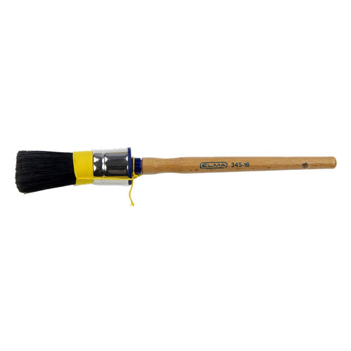 De Elma patentpuntkwast 345 is gemaakt van zwart varkenshaar. De kwast is daardoor met name geschikt voor gebruik in combinatie met oplosmiddelhoudende (alkyd) lakken. Het zwarte varkenshaar van de Elma Patentpuntkwast 345 behoort to de betere varkenshaarsoorten en onderscheidt zich door sterkte en elasticiteit. De natuurlijke bles (gespleten haarpunt) zorgt voor een mooie verfafgifte.