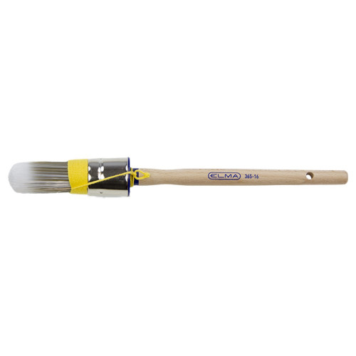 De Elma patentpuntkwast 365 heeft een gele touwwoeling, houten steel, synthetisch haar en blanke bus. Voor precisiewerkjes gebruikt men bij voorkeur een patentkwast, dit is een ronde kwast met afgeschuinde punt. Hiermee kan nauwkeurig langs randen geschilderd worden. De haren van synthetische vezels maken de kwast geschikt voor gebruik in combinatie met zowel oplosmiddelhoudende (alkyd) als watergedragen (acryl) lakken.
