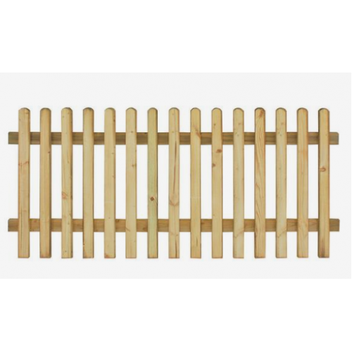 Vuren latten 2,8x6 cm op steunbalken van 3,5x7 cm. De latten zijn bovenaan afgerond.