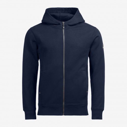 Deze hoogwaardige en slijtvaste sweatjack met capuchon bestaat uit een zachte mix van katoen/jersey en voelt ongelofelijk comfortabel aan dankzij de geborstelde binnenkant, slimfit pasvorm, YKK Vislon-rits aan de voorkant, dubbellaagse capuchon, boord onderaan en manchetten bij de mouwen van gebreide ribstof.