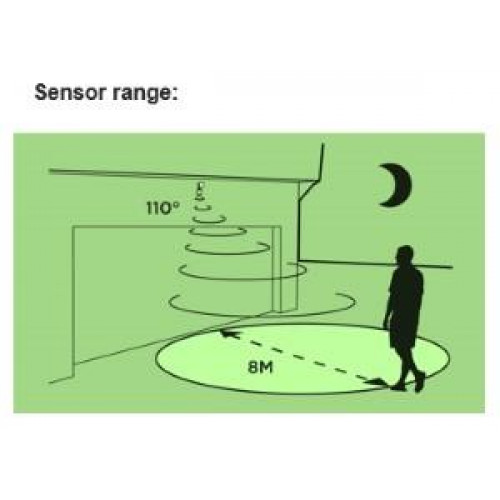 Bent u op zoek naar een krachtige buitenlamp met sensor op batterijen? De SafeGuard RF op batterijen licht automatisch op wanneer iemand voorbij loopt Hij is heel makkelijk te installeren Waterdicht IP55 Gaat automatisch aan wanneer er beweging gedetecteerd wordt in het donker Werkt op 3 AA batterijen (inbegrepen) Licht instelbaar in alle richtingen 120 Lumen 1W Geschik van -20gr tot +50gr Brand 300 dagen op een setje batterijen als deze 5 maal per dag aanspringt.