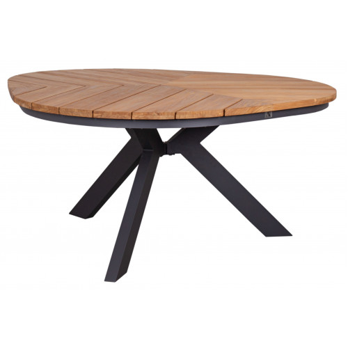 Het tafelblad is opgebouwd uit teak latten, waardoor de tafel een warme en natuurlijke uitstraling krijgt. Het bijzondere driehoekige bladvormige ontwerp maakt de Granville Leaf tot een unieke blikvanger in de tuin of op het terras.