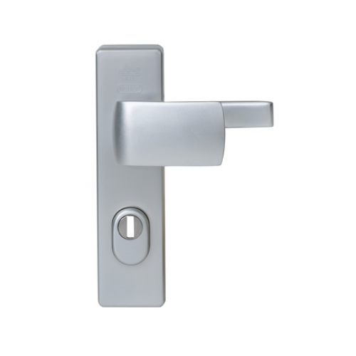 NEMEF_YALE Veiligheidsdeurbeslag SKG***, NEMEF design kortschild rechthoekig, knop-kruk, afstand: 72mm, kleur: zilver F1 voorzien van kerntrekbeveiliging, deurdikte 38-54 mm, blisterverpakking.