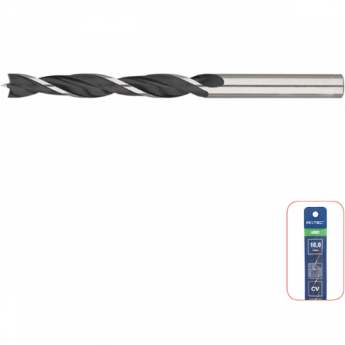 Houtspiraalboor, vervaardigd uit chroom-vanadiumstaal, voorzien van centreerpunt en twee voorsnijders.