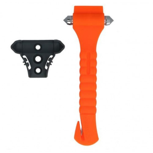 Dubbele hamer met geharde punten om ramen in enkele seconden te verbrijzelen. Ingebouwd, vlijmscherp mes voor het doorsnijden van gordels. Door zijn fluorescerende kop is de noodhamer in het donker altijd makkelijk te vinden.
