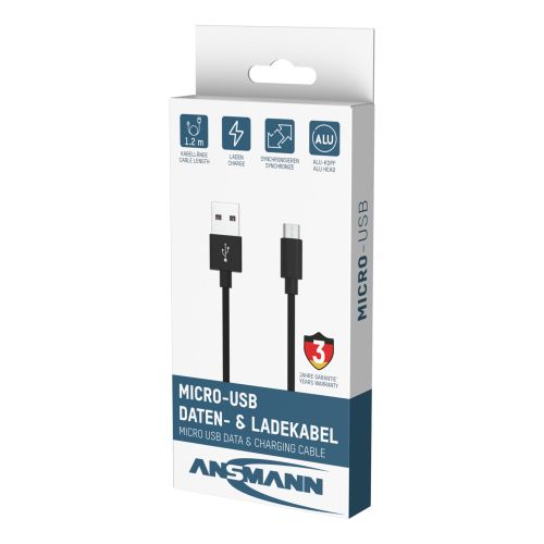 De praktische ANSMANN data- en oplaadkabel biedt de optimale oplossing voor het opladen en synchroniseren van uw gegevens met maximaal 480 Mbps.