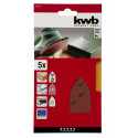 kwb Schuurdriehoeken, hout en metaal, edelkorund, 107 x 175 mm Quick stick -- Schuurdriehoeken, HOUT & METAAL, edelkorund, 107 x 175 mm, met aluminiumoxide bestrooid, gebonden met volledig synthetisch hars, versterkt dragermateriaal, met velours rug, geperforeerd, voor delta-/driehoekschuurmachines, voor het schuren van metaal, hout, verf, lak, plamuur, steen en kunststof.