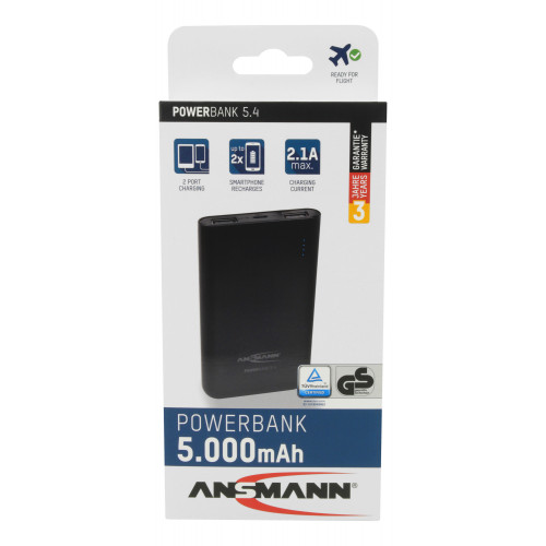 Mobiele extra accu (powerbank) met 2 USB poorten en een capaciteit van 5000 mAh