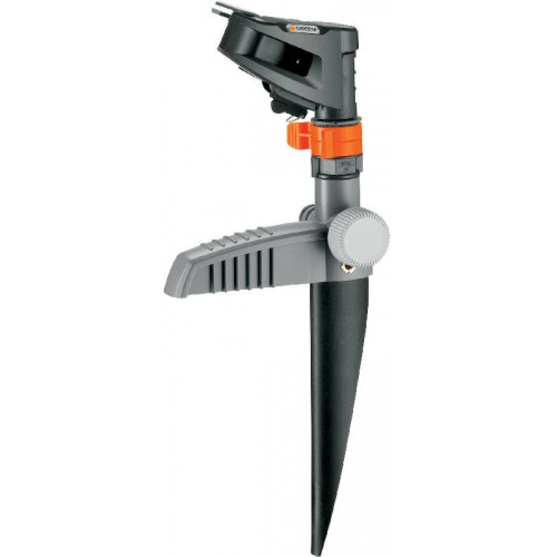 De pulserende sector- en cirkelsproeier heeft een stevig ontwerp van kunststof. Op de speciaal gemonteerde stelringen kunt u eenvoudig instellen welke sector er moet worden besproeid met fijne instelmogelijkheden van 25° tot 360°. De geselecteerde sector kan altijd vanaf deze stelringen worden bekeken. U kunt het bereik instellen met de grote, eenvoudig te gebruiken draaiknop. Dit kan worden ingesteld van 5 m tot maximaal 12,5 m. Er kan een oppervlak van 75 m² tot maximaal 490 m2 worden besproeid. De sproeier wordt op een kunststof spike gemonteerd. Hiermee kan de GARDENA Pulserende sector- en cirkelsproeier eenvoudig in het gazon worden geplaatst. En de sproeier kan net zo gemakkelijk weer ergens anders worden neergezet. De sproeier is voorzien van het verbindingsstuk en de einddop van het GARDENA System. U kunt het systeem meteen in uw tuin gebruiken. Als u een groter oppervlak wilt besproeien, koppelt u gewoon meerdere sproeiers aan elkaar. Voor gemakkelijke besproeiing van uw tuin.