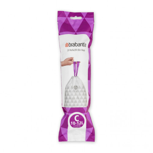 Voor elke bak een passende zak met Brabantia Perfect Fit Afvalzakken - 10/12 liter - Code C - 20 stuks. Brabantia afvalzakken zijn precies afgestemd op Brabantia pedaalemmers, prullenbakken, afvalemmers, Touch bins etc. Voor elk model is er een perfect passende afvalzak. Door de handige trekbandsluiting is de volle zak makkelijk te verwijderen en dicht te knopen.