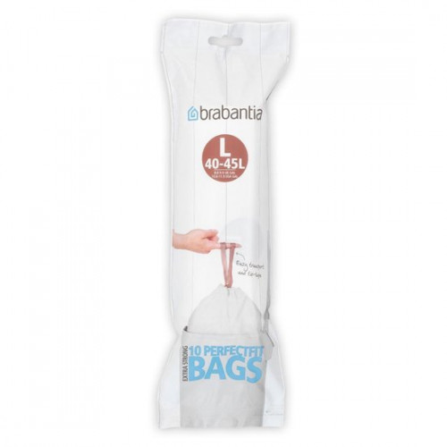 Voor elke bak een passende zak met Brabantia PerfectFit Afvalzakken - 40/45 l - Code L - 10 stuks. Brabantia afvalzakken zijn precies afgestemd op Brabantia pedaalemmers, prullenbakken, afvalemmers, Touch bins etc. Voor elk model is er een perfect passende afvalzak. Door de handige trekbandsluiting is de volle zak makkelijk te verwijderen en dicht te knopen.