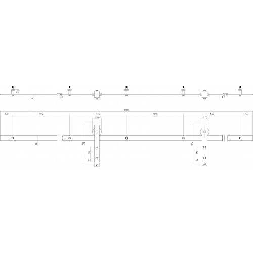 | Article package | Twee stalen rails van 100 cm|Twee gelagerde stalen hangers|Twee stalen deurstoppers|Afstandhouders voor op de deur|Schuifdeur vloergeleider|Bevestigin |