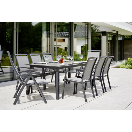 Ook de functies en materialen van de klapstoel zijn werkelijk koninklijk. Wat opvalt is de 6-voudig verstelbare rugleuning voor echte momenten van welzijn. Het frame van aluminium buizen is voorzien van een polyester coating. Armleuningen en rugleuning zijn gemaakt van gegoten aluminium met een polyester structuurcoating. De ROYAL klapstoelen zijn weerbestendig en duurzaam. Bovendien zorgen de zit- en rugvlakken van Textilux®-kunstvezelstof ervoor dat u zich ook na langdurig zitten nog steeds een koningsgevoel voelt. Bouw je eigen troon met de klapstoelen van ROYAL.
