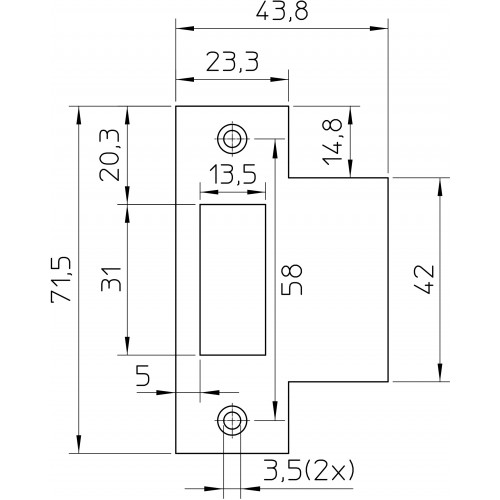 OmschrijvingSluitplaat, staal verzinkt 23.3x71.5mm rechthoekig