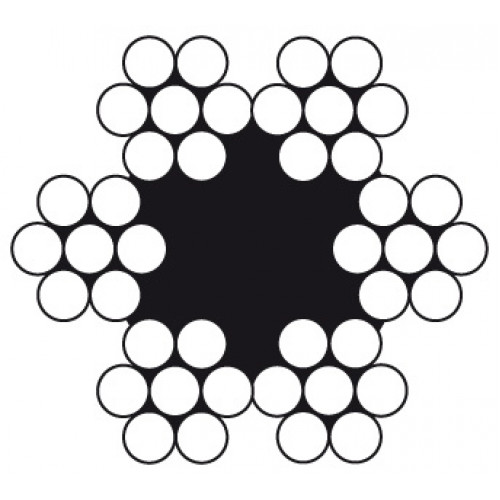 DX Staalkabel DIN 3055 6x7 + 1 touwkern verzinkt is niet geschikt voor hijsdoeleinden. De staalkabel is een relatief stugge kabel. In combinatie met het DX staalkabel toebehoren, zoals kousen, staaldraadklemmen en spanschroeven, zijn vele toepassingen in te vullen in bijvoorbeeld: - Bouw & Industrie - Scheepsvaart & Watersport - Stallen- en kassenbouw Technische info DX Staalkabel DIN 3055 6x7 + 1 TWK, verzinkt bestaat uit 6 verzonken strengen van 7 staaldraden die kruisslag rechts om 1 touwkern zijn geslagen. De kabel is relatief stug en wordt geleverd op haspels van 50 en 100 meter.Toepassingsadvies Veiligheid staat voorop bij het toepassen van staalkabels. De plaats en de wijze waarop de staalkabel wordt ingezet zijn belangrijke aspecten waar rekening mee moet worden gehouden. Voor een veilige toepassing (Safe Working Load) dient de maximale Minimum Breaking Load (MBL) gedeeld te worden door de veiligheidsfactor 5. Voor meer informatie over de MBL en SWL zie aanvullende informatie en de MBL bij iedere staalkabeldikte. Deze staalkabel is niet geschikt voor hijsdoeleinden. Alternatief Deze staalkabel is ook verkrijgbaar met PVC ommanteling ter bescherming tegen weersinvloeden en het voorkomen van beschadiging aan andere voorwerpen. Voor een soepelere staalkabel kan uitgeweken worden naar de staalkabel 6x12 + 7 touwkernen.
