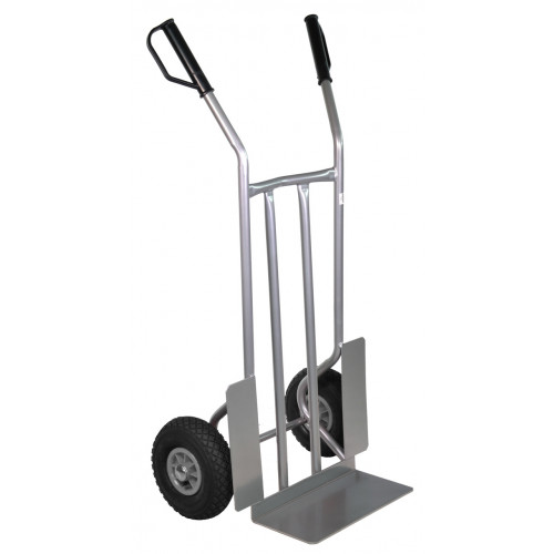Steekwagen met frame van grijs gecoate buis in RAL 9007 (Ø 25 mm) met veiligheidshandvatten. Formaat 118x60 cm, bladmaat 40x20 cm. Geschikt voor max. 250 kg. Wielen 300x4 2ply met kunststof velg, kogellagers en binnenband.
