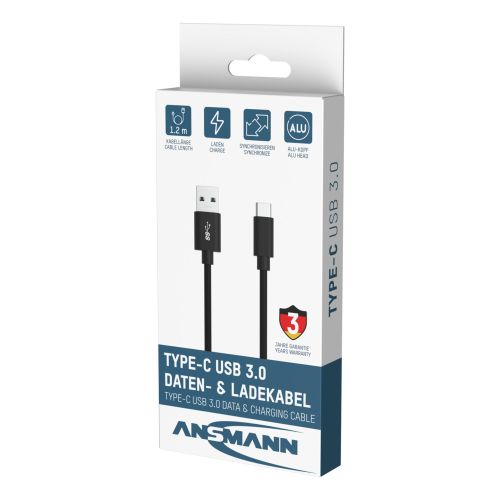 De praktische ANSMANN data- en oplaadkabel biedt de optimale oplossing voor het opladen en synchroniseren van uw gegevens met maximaal 5 Gbps.