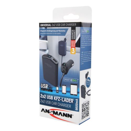 De nieuwe ANSMANN USB-autolader biedt de mogelijkheid om tot vier apparaten (4 USB-poorten) tegelijk op te laden - met slechts één 12V-sigarettenaansteker. Ideaal voor gebruik in auto's of bedrijfsvoertuigen: tot twee van de vier USB-poorten kunnen eenvoudig en gemakkelijk via een kabel naar bijvoorbeeld de achterbank worden geleid. Dit zorgt voor een complete stroomvoorziening met USB-laadaansluitingen (4x 2400 mA) voor alle inzittenden in de auto. Dankzij de praktische clipbevestiging kan de lader veilig op de achterbank worden bevestigd (bijvoorbeeld in het opbergvak achter de rugleuning van de bestuurder), zonder dat het interieur er rommelig uitziet of er een 'kabelspaghetti' ontstaat. Met een kabellengte van 1,80 m is de verlengkabel ontworpen voor de meeste gangbare auto's, zonder overmatige kabels en toch lang genoeg voor grotere voertuigen.