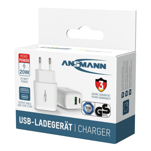 Met 2 USB-poorten en een vermogen van 20 W biedt de USB-PD/QC-lader van ANSMANN de ideale laadoplossing voor uw toepassing. De intelligente laadregelaar is compatibel met Power Delivery en Quick Charge, waardoor het opladen van uw apparaat te allen tijde wordt geoptimaliseerd. De Multisafe-technologie zorgt voor veiligheid tijdens het gehele laadproces. Het zeer lage standby-verbruik maakt deze lader niet alleen efficiënt, maar ook zuinig.