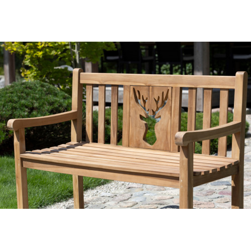 Veluwe Teakbank 120 cm – Jong Teak met Hertenhoofd