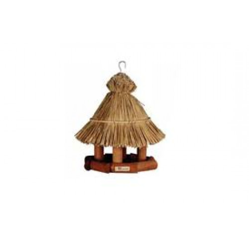 Het RH Vogelvoederhuis Stolp rond – Bruin is een leuk hangend voerhuisje om op te hangen, afgebeitst met milieuvriendelijke bruine acrylverf. Het dak is bedekt met riet. Gemaakt in Nederland.