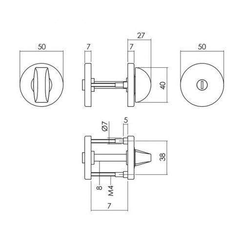 De rozet heeft een diameter van 50 mm en is 7 mm dik